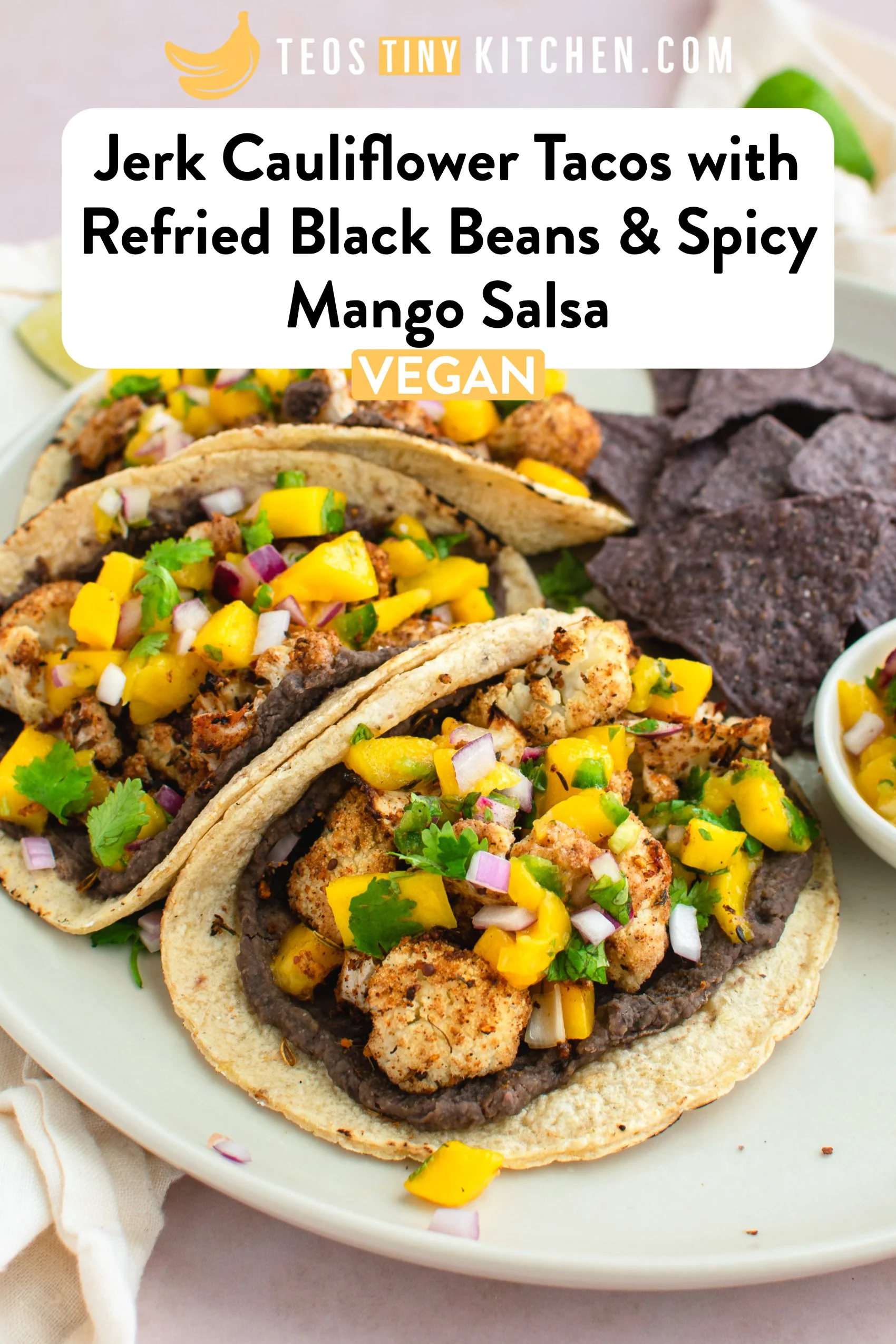 Jerk Cauliflower Tacos with Refried Black Beans & Spicy Mango Salsa